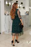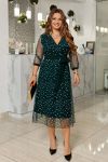 Елегантне жіноче плаття, виконане з кріп дайвінгу (тягнеться) і сітки з блиском. Перед сукні з імітацією запаху. До сукні додається знімний пояс із основної тканини. У такій сукні будь-яка жінка зможе відчути себе справжньої леді та королевою вечора, ця сукня здатна надати жінці ніжності, легкості та елегантності.