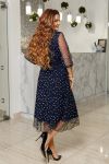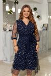 Елегантне жіноче плаття, виконане з кріп дайвінгу (тягнеться) і сітки з блиском. Перед сукні з імітацією запаху. До сукні додається знімний пояс із основної тканини. У такій сукні будь-яка жінка зможе відчути себе справжньої леді та королевою вечора, ця сукня здатна надати жінці ніжності, легкості та елегантності.