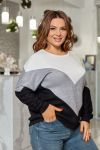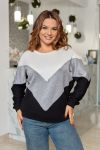 Ефектний джемпер вільного силуету. Джемпер виконаний у техніці "ручного в'язання" з ангори. Круглий виріз виробу оброблений двосторонніми планками. Рукав у виробі спущений на манжеті по низу. Низ джемпера оброблений притачною планкою із основної тканини.