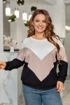 Ефектний джемпер вільного силуету. Джемпер виконаний у техніці "ручного в'язання" з ангори. Круглий виріз виробу оброблений двосторонніми планками. Рукав у виробі спущений на манжеті по низу. Низ джемпера оброблений притачною планкою із основної тканини.