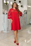 Ефектна жіноча сукня А-силуету. Це святкове, але в той же час елегантне вбрання прикрашене вставками з сітки з блискучим напиленням і здатне підкреслити індивідуальність і шляхетність своєї володарки. На спинці оброблена крапелька на навісну петлю та гудзик. Силует сукні чудово приховує нюанси фігури та підкреслює переваги.