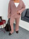 Осінній прогулянковий костюм. Кофта+ Штани. на функціональних гудзиках, довгий рукав розширений. Штани на резинці розширені від стегна. Тканина в'язання трикотаж рубчик. Тканина м'яка, дуже приємна до тіла, добре тягнеться.