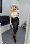 Спідниця-міді жіноча зі штучної шкіри, модна облягаюча спідниця.