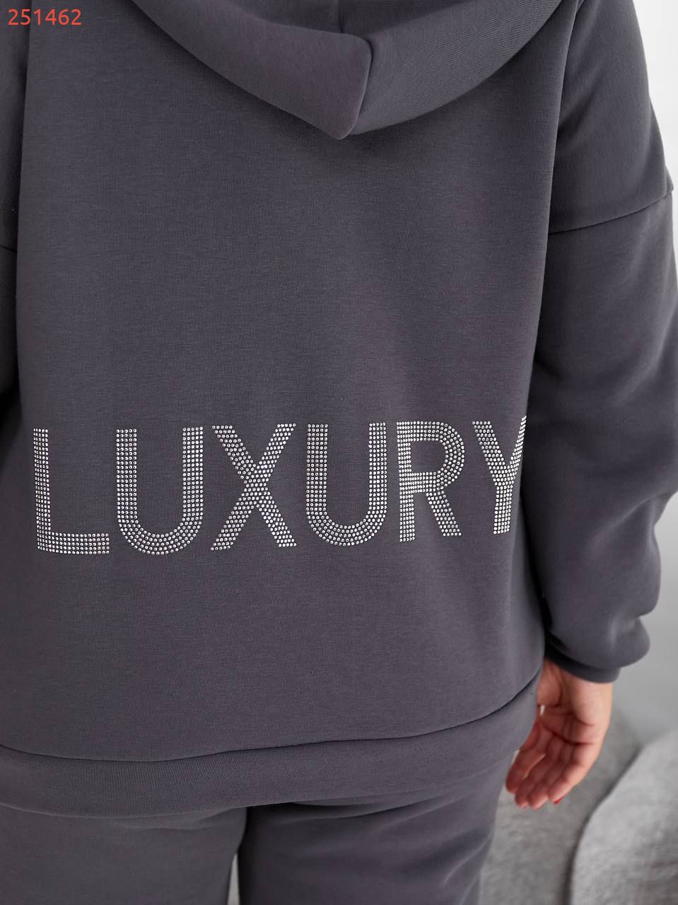 Кофта вільного крою, зручний глибокий капюшон, декорована камінням.