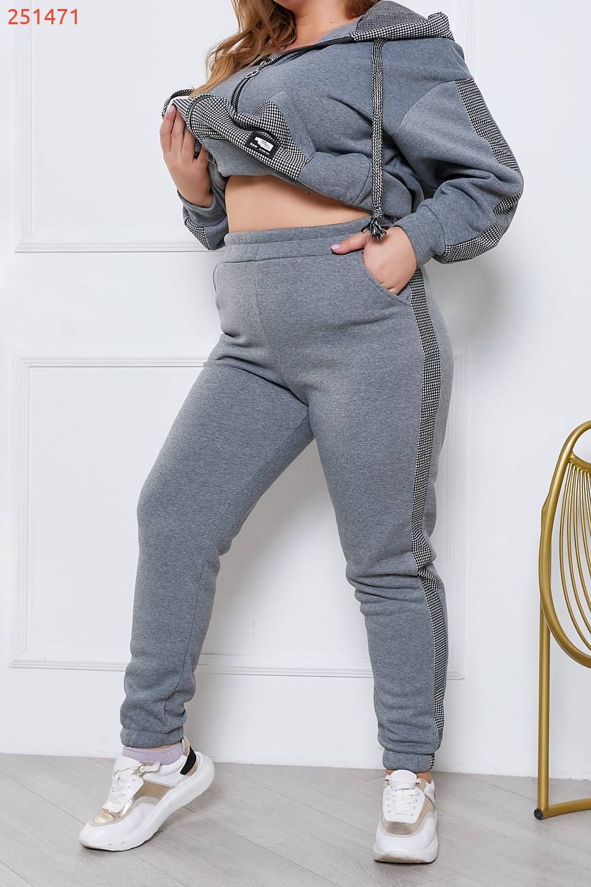 Штани вільного крою з високою посадкою, пояс гумка, в області бічних швів вставки з тканини з дизайном, кишені, манжет-гумка