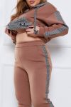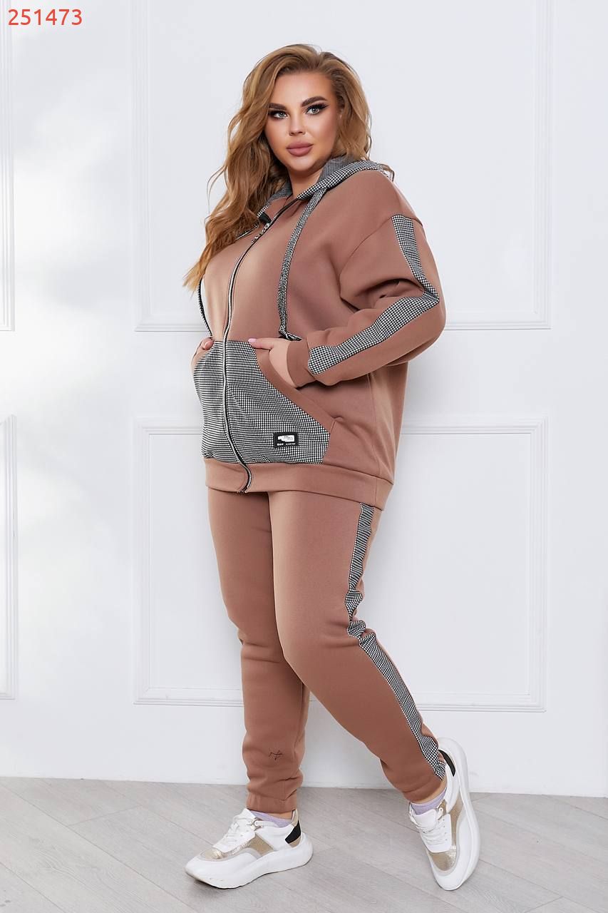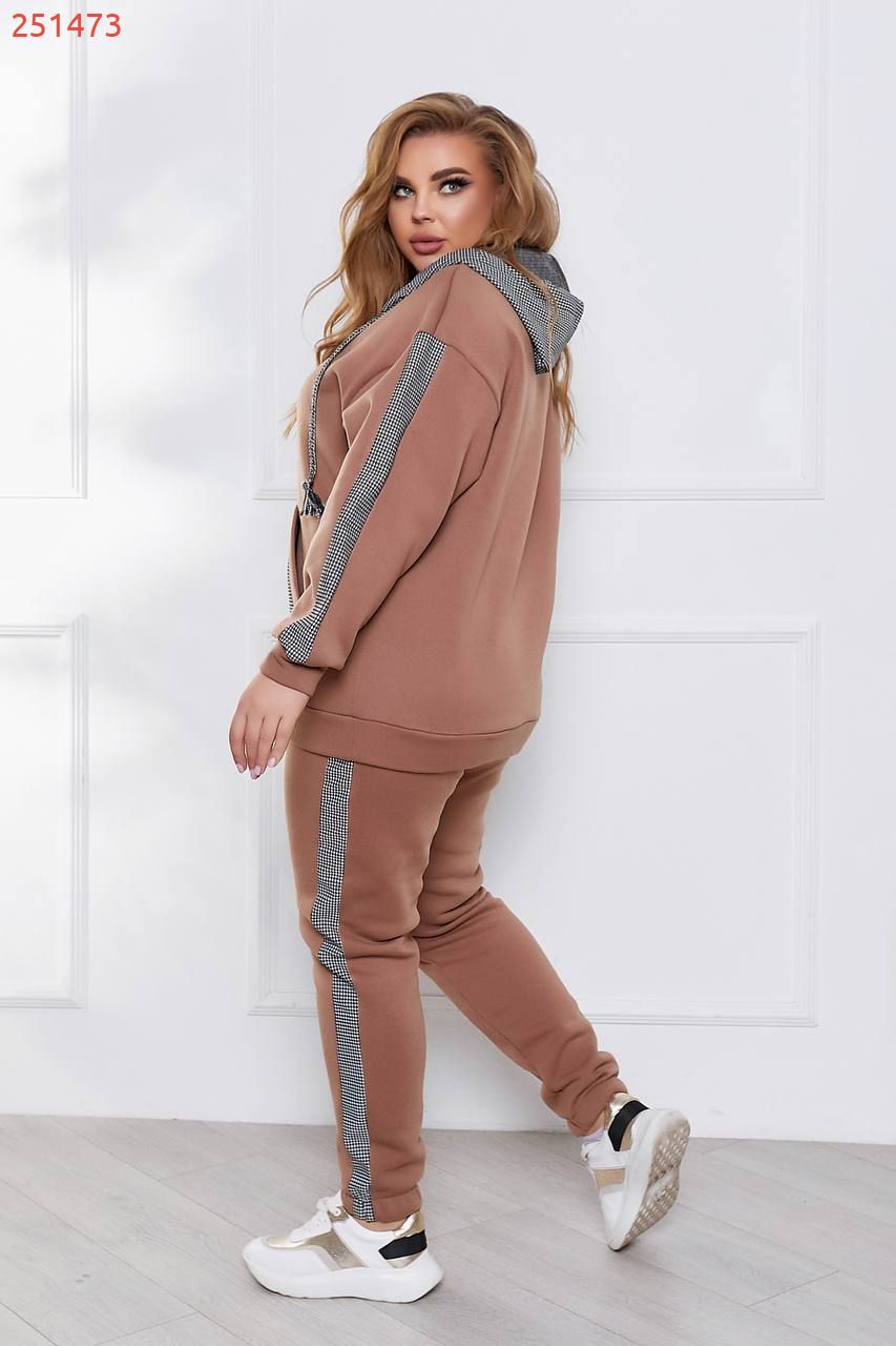 Кофта подовжена з кишенями «кенгуру» з тканини з дизайном, лінія плеча з опущеною проймою, рукави декоровані вставками з тканини з дизайном