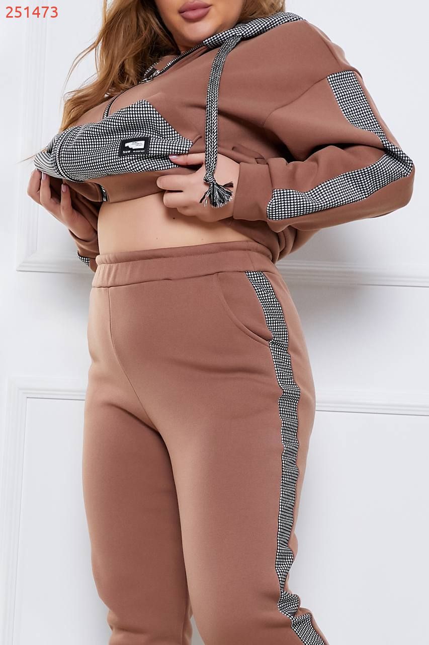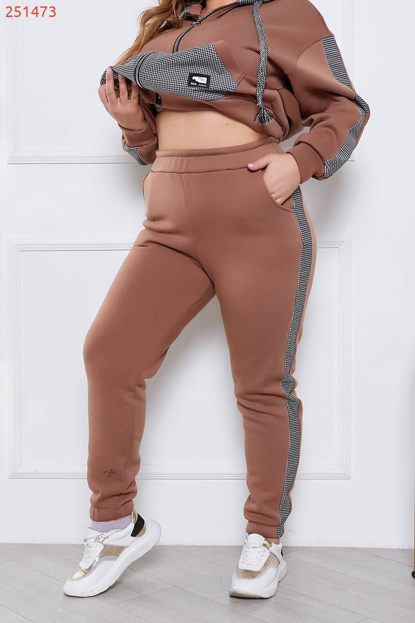 Штани вільного крою з високою посадкою, пояс гумка, в області бічних швів вставки з тканини з дизайном, кишені, манжет-гумка