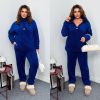 Довжина штанів : 110 см. Теплий костюм двійка . Худі подовжене , на манжеті , з коміром - стійка на блискавці . Штани з високою посадкою на гумці , низ на манжеті