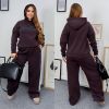 Теплий костюм на холодну пору . Світшот на манжеті , з капюшоном . Широкі штани з високою посадкою , пояс на гумці , бічні кишені .