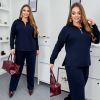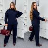 Теплий костюм на холодну пору - кофта + штани . Кофта подовжена прямого покрою , комір стійка на блискавці . Широкі штани з високою посадкою на гумці .