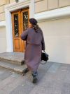 Підкладка стьобана на синтепоні 100. Крій оверсайз, чоловічий двобортний піджак (тренд цього сезону). Підплечники вшити. Застібки – гудзики, додається пояс – можна приталювати, створюючи інший стиль образу. Довжина виробу 124 см, довжина рукава – 63см
