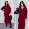 Теплий костюм - кофта + спідниця . Кофта прямого покрою , комір стійка на блискавці . Спідниця покрою трапеція , пояс на гумці , ззаду розріз .