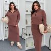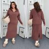 Теплий костюм - кофта + спідниця . Кофта прямого покрою , комір стійка на блискавці . Спідниця покрою трапеція , пояс на гумці , ззаду розріз .
