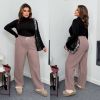 Теплі , мягенькі штани вільного покрою , з бічними кишенями , пояс на гумці та шнурку , з високою посадкою .