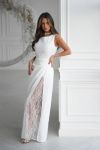 Елегантна сукня з гладкої костюмної тканини з розкішною мереживною вставкою, прикрашеною глітером.