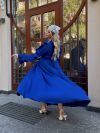 Довжина 143см, одягається на запах. Ідеальна посадка. Спідниця-напівсонце – не повнить. Легке, приємне до тіла. Прикрашення- паси - Тренд цього сезону. Вони роблять сукню повітряною , додають шарму