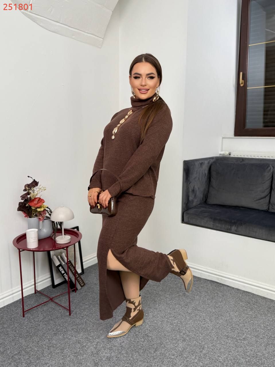 54-56 Ог 118, довжина кофти 61, талія тягнеться до 120, бедра 118, довжина спідниці 91
