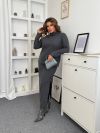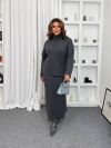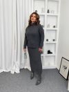 54-56 Ог 118, довжина кофти 61, талія тягнеться до 120, бедра 118, довжина спідниці 91