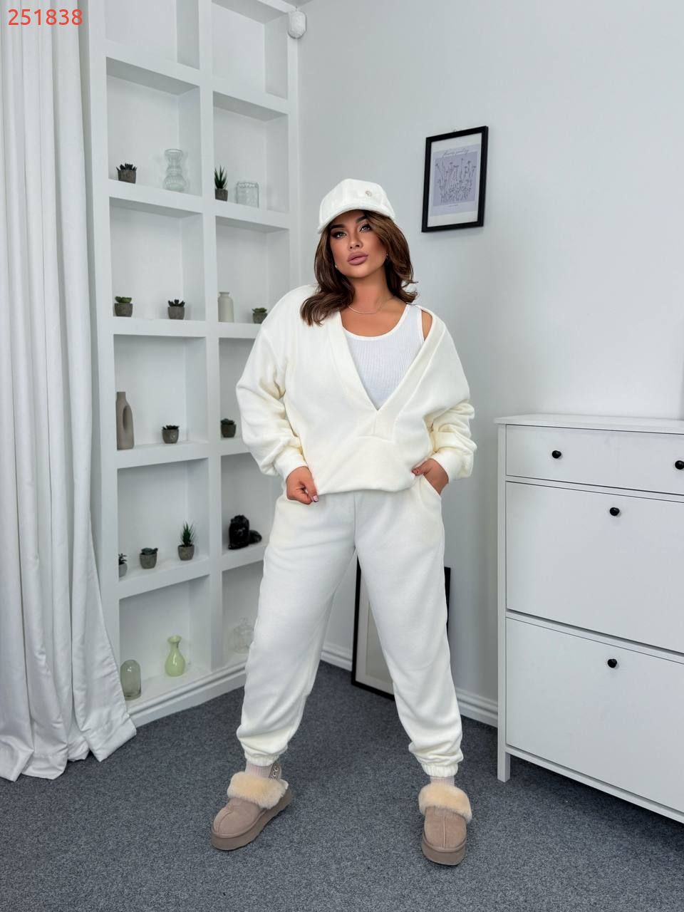 52-54 Кофта Ог 138 см, рукав 57 см, плече 22 см, спинка 72 см. Майка по спинці 56 см, Ог 116 см. Штани от 80-140 см, об 140 см, довжина 109 см.