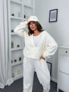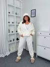 60-62 Кофта Ог 154 см, рукав 58 см, плече 23 см, спинка 73 см. Майка по спинці 105 см, Ог 136 см. Штани от 90-150 см, об 152 см, довжина 110 см.