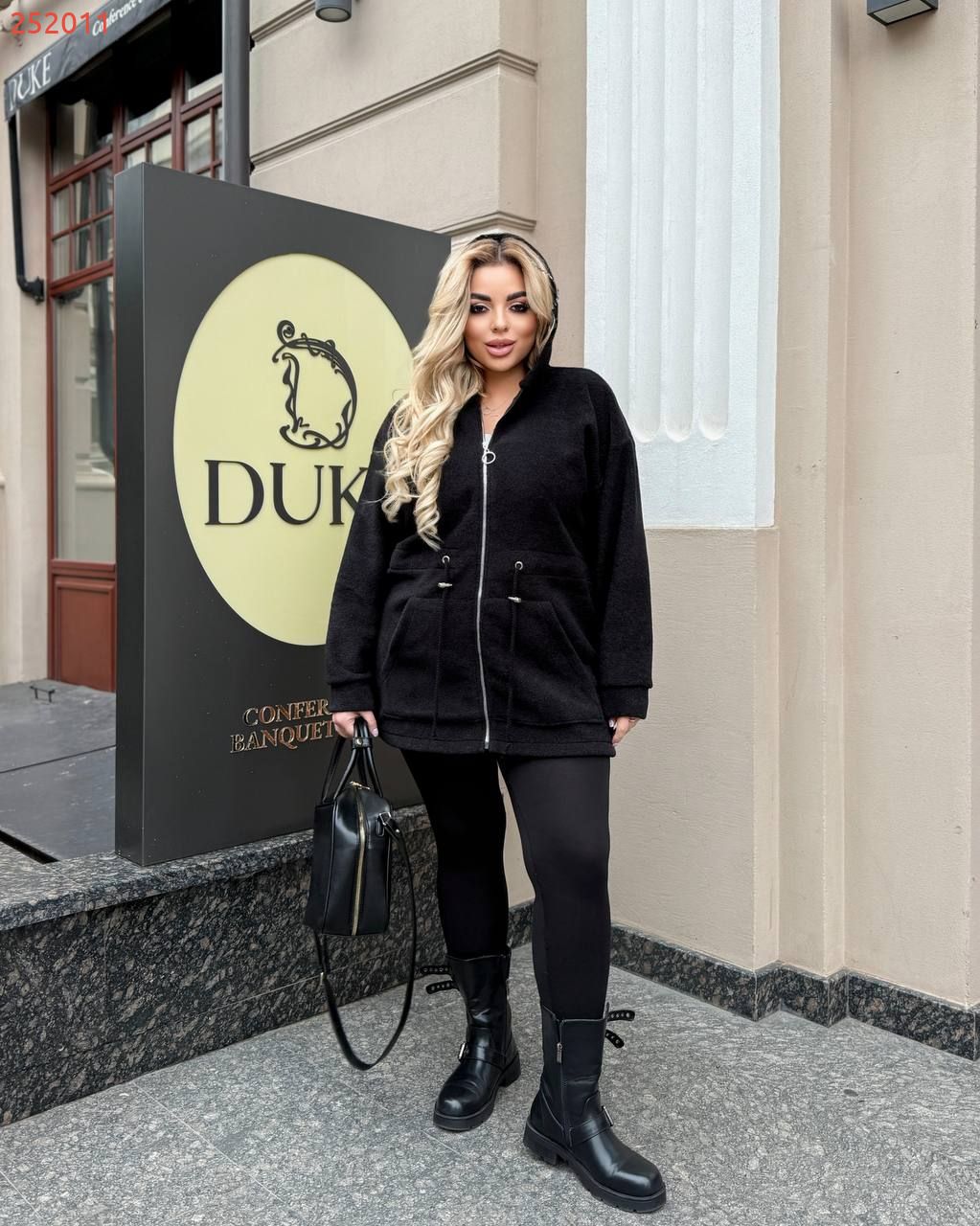 Довжина комфортна – прикриває стегна, створюючи акуратний та витягнутий силует.