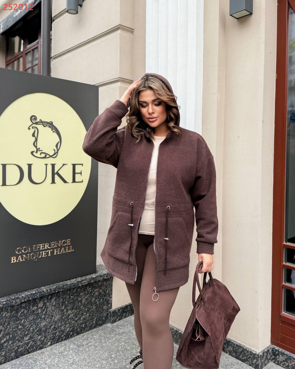Довжина комфортна – прикриває стегна, створюючи акуратний та витягнутий силует.