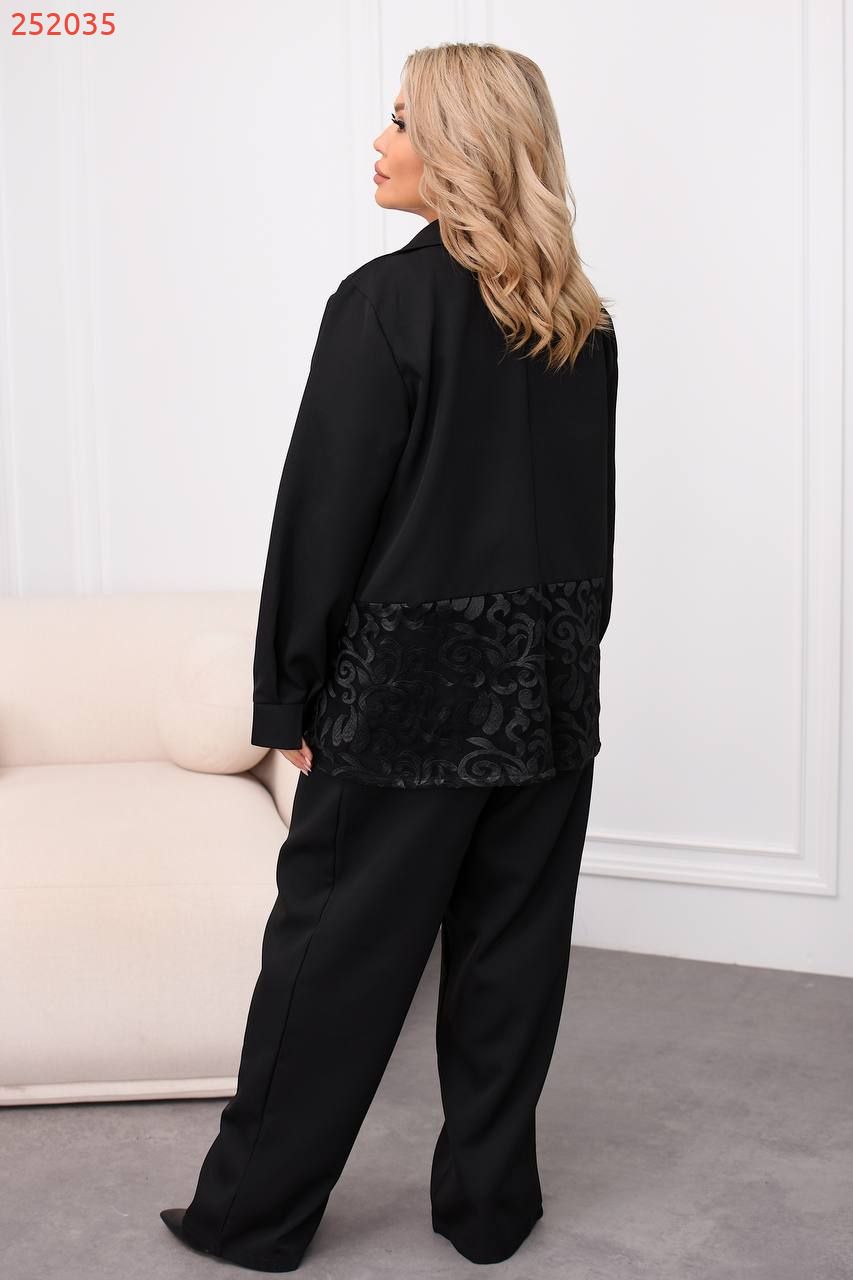 Стильний жіночий костюм .Подовжений піджак, прямого крою, з класичним коміром .Широкі штани. Цей костюм відмінно підійде для повсякденних, ділових та стильних образів, поєднуючи комфорт та елегантність