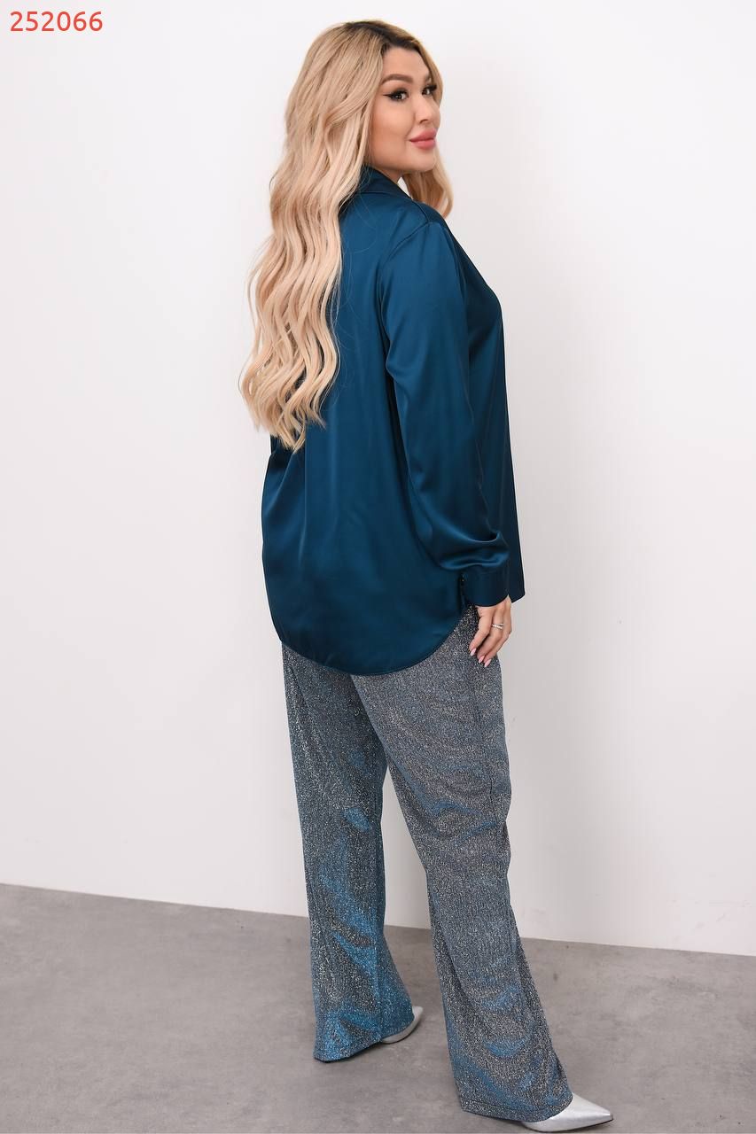 Тканина: рубашка шовк Армані + штани трикотаж с напиленням! Дуже гарно мерехтить в тон рубашці ! На фото майже не видно