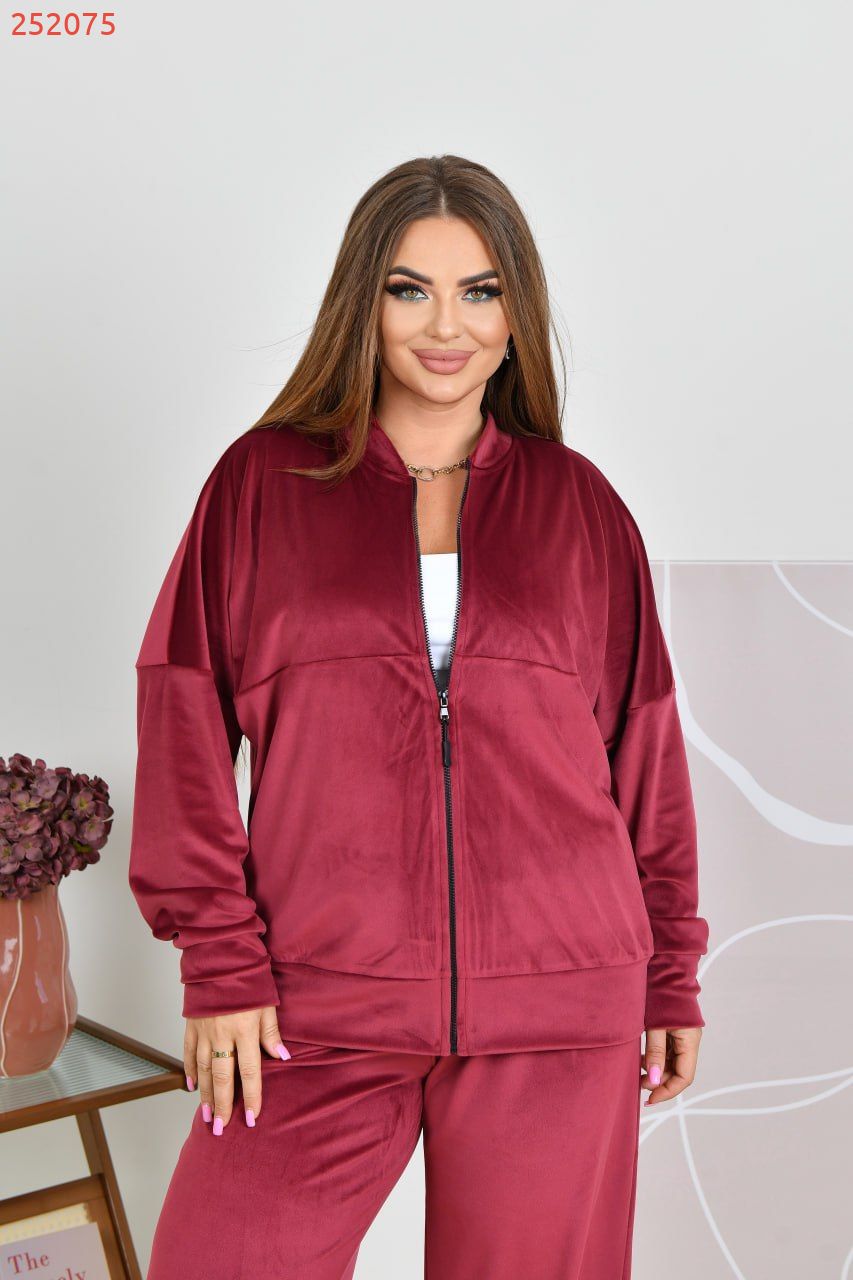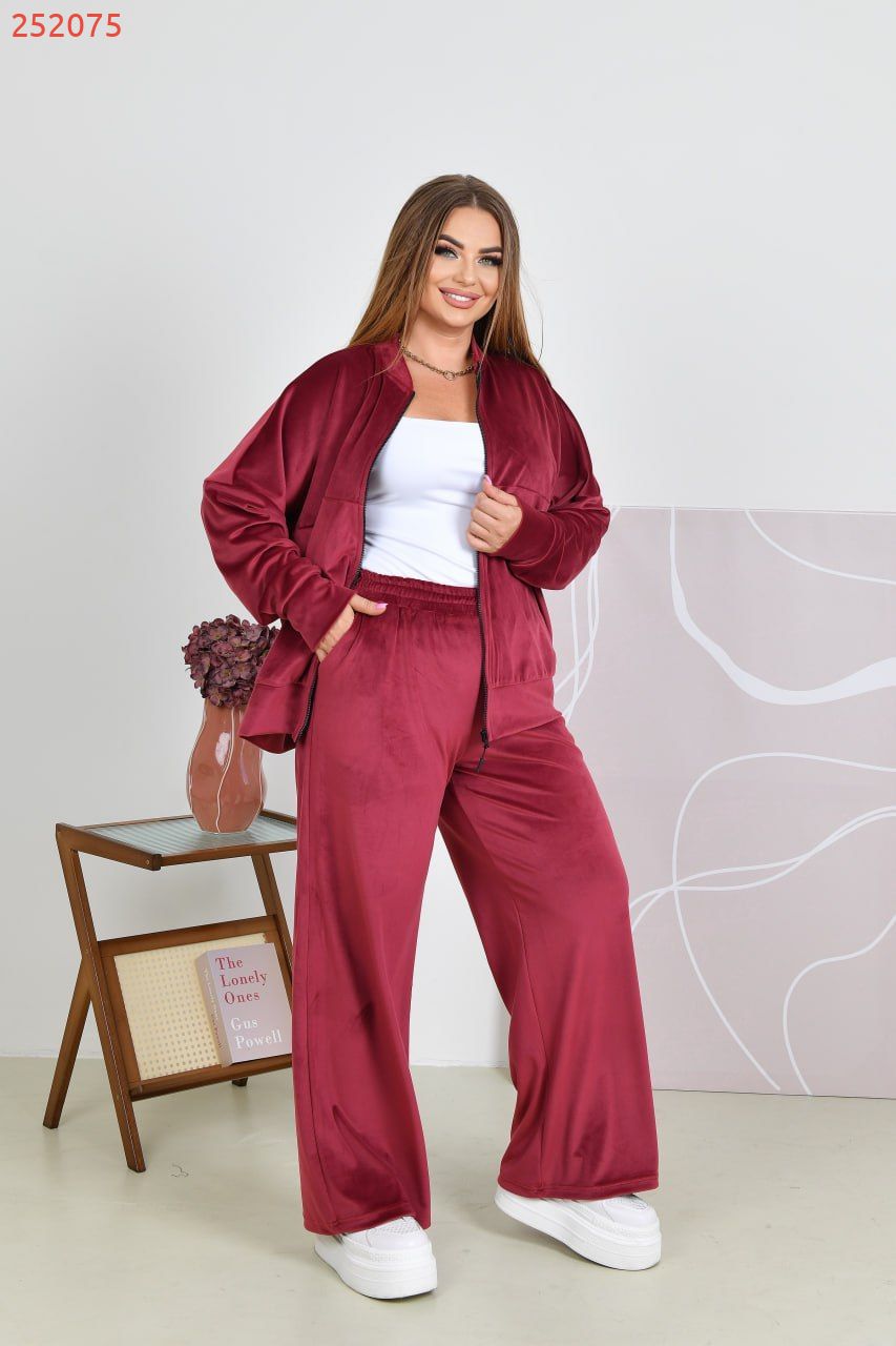 Стиль та комфорт одночасно поєднані в цьому костюмі. Його виготовлено із якісного велюру (трикотаж дуже добре тягнеться).