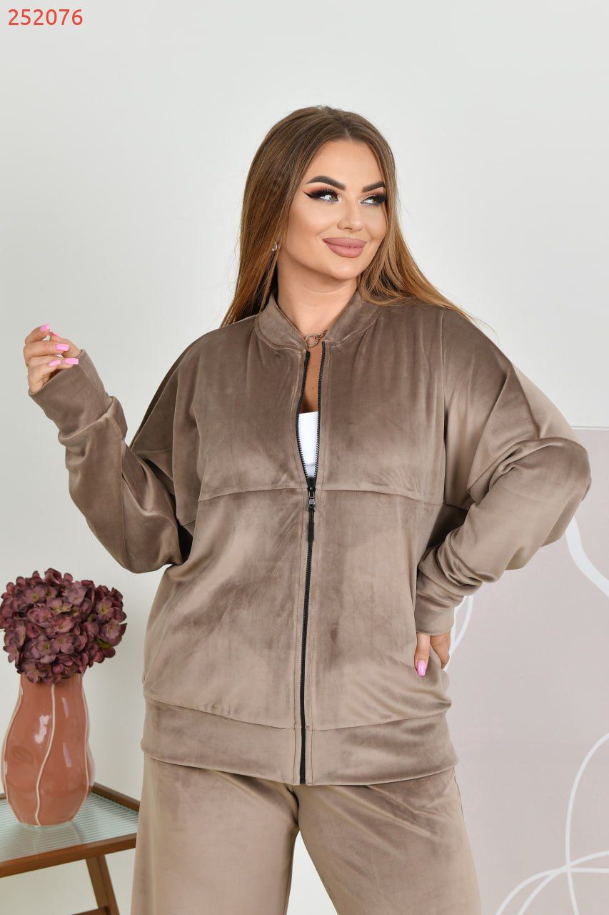 Стиль та комфорт одночасно поєднані в цьому костюмі. Його виготовлено із якісного велюру (трикотаж дуже добре тягнеться).