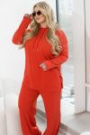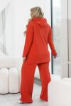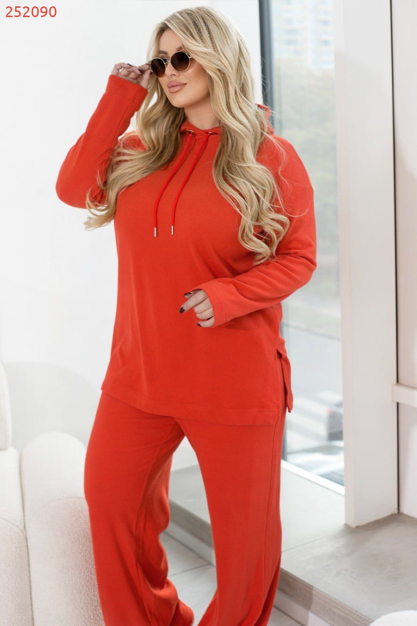 Легкий костюм-двійка, виконаний з м’якої та теплої тканини, відмінно поєднується з кросівками і великими джинсовими куртками. До його складу входить кофта крою oversize зі светром з довгими рукавами і капюшоном, а також актуальні штани-палаццо вільного крою з кишенями на резинці, вшитій по лінії талії.