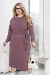 Мінімалістична жіночна сукня, виконана з м'якої ангорової тканини, здатна надати силуету вашої фігури м'якості і природності. Модель прямого силуету доповнена довгими рукавами "реглан" з манжетами, а також фігурним вирізом збоку внизу і трохи асиметричним низом, подовженим спереду. Родзинкою цієї сукні є текстильний пояс, вшитий в бокові шви, за допомогою якого ви можете змінювати свій образ, зав'язуючи його спереду або ззаду.