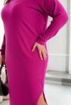 Стильна сукня, виконана з м'якої ангорової тканини, відрізняється універсальністю, а також вдало вписуються в будь-який стиль. Модель лаконічного прямого силуету доповнена довгими рукавами "реглан" з манжетами, а також фігурним вирізом збоку внизу і злегка асиметричним низом, подовженим спереду.