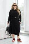 Стильна сукня, виконана з м'якої ангорової тканини, відрізняється універсальністю, а також вдало вписуються в будь-який стиль. Модель лаконічного прямого силуету доповнена довгими рукавами "реглан" з манжетами, а також фігурним вирізом збоку внизу і злегка асиметричним низом, подовженим спереду.