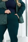 Спортивний костюм із кофтою на змійці, пошитий із поєднання тканин "стежка" та трьохнитки, створений для комфорту та стилю. Кофта оснащена капюшоном зі шнурком, що проходить через люверси, забезпечуючи захист і регулювання. Спереду розташовані врізні кишені для зручності. Рукава з трьохнитки з манжетами забезпечують комфортну посадку. Штани з високою посадкою на еластичній гумці з боковими кишенями і манжетами внизу додають функціональності та забезпечують тепло. Ідеальний вибір для активного відпочинку чи повсякденних занять.