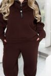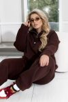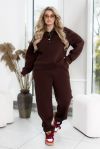 Спортивний костюм із трьохнитки на флісі забезпечує ідеальне поєднання тепла та комфорту в прохолодну погоду. Худі має зручну змійку і високу горловину, що ефективно захищає шию від холоду. Довгі рукави з манжетами забезпечують комфортну посадку та зберігають тепло. Штани з високою посадкою на еластичній гумці підкреслюють фігуру та забезпечують максимальну свободу рухів. Манжети внизу штанів додають стильного вигляду та додаткового тепла. Бокові кишені роблять костюм практичним і зручним для щоденного носіння або активного відпочинку.