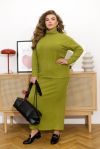 Цей вишуканий костюм виконаний із щільної, високоякісної в'язаної тканини, яка не кашлатиться і зберігає свій бездоганний вигляд навіть після тривалого носіння. Кофта з високою горловиною додає елегантності та затишку. Рукава з заниженою лінією плеча створюють стильний, вільний силует, а широкі манжети додають акуратності та сучасного вигляду.Спідниця прямого крою з резинкою в талії підкреслює фігуру, при цьому забезпечує максимальний комфорт. Шов, що проходить позаду, додає спідниці елегантності та підкреслює її витончену форму. Цей костюм – ідеальний вибір для тих, хто цінує стиль, комфорт та високу якість. Він стане чудовим доповненням до вашого гардеробу.