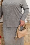 Цей вишуканий костюм виконаний із щільної, високоякісної в'язаної тканини, яка не кашлатиться і зберігає свій бездоганний вигляд навіть після тривалого носіння. Кофта з високою горловиною додає елегантності та затишку. Рукава з заниженою лінією плеча створюють стильний, вільний силует, а широкі манжети додають акуратності та сучасного вигляду.Спідниця прямого крою з резинкою в талії підкреслює фігуру, при цьому забезпечує максимальний комфорт. Шов, що проходить позаду, додає спідниці елегантності та підкреслює її витончену форму. Цей костюм – ідеальний вибір для тих, хто цінує стиль, комфорт та високу якість. Він стане чудовим доповненням до вашого гардеробу.
