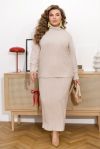 Цей вишуканий костюм виконаний із щільної, високоякісної в'язаної тканини, яка не кашлатиться і зберігає свій бездоганний вигляд навіть після тривалого носіння. Кофта з високою горловиною додає елегантності та затишку. Рукава з заниженою лінією плеча створюють стильний, вільний силует, а широкі манжети додають акуратності та сучасного вигляду.Спідниця прямого крою з резинкою в талії підкреслює фігуру, при цьому забезпечує максимальний комфорт. Шов, що проходить позаду, додає спідниці елегантності та підкреслює її витончену форму. Цей костюм – ідеальний вибір для тих, хто цінує стиль, комфорт та високу якість. Він стане чудовим доповненням до вашого гардеробу.