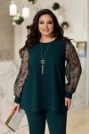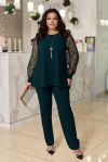 Неймовірно жіночний образ. Костюм складається з блузи та штанів. Блуза по спинці застібається на гудзик. Окрасою служать широкі рукави, виконані з сітки із сріблястим напиленням, що створює делікатне мерехтіння.