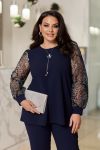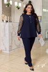 Неймовірно жіночний образ. Костюм складається з блузи та штанів. Блуза по спинці застібається на гудзик. Окрасою служать широкі рукави, виконані з сітки із сріблястим напиленням, що створює делікатне мерехтіння.