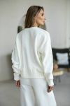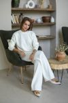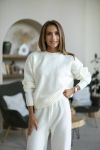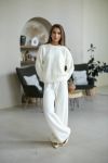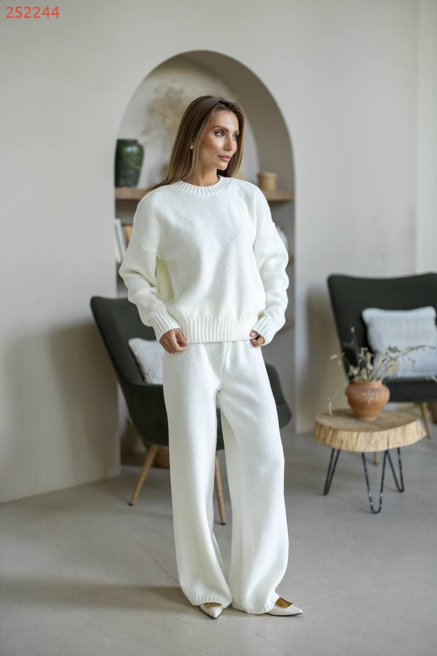 Затишний костюм із щільної фактурної в'язки з м'яким приляганням до тіла. Вільний светр та прямі штани створюють елегантний, розслаблений образ щодня.