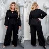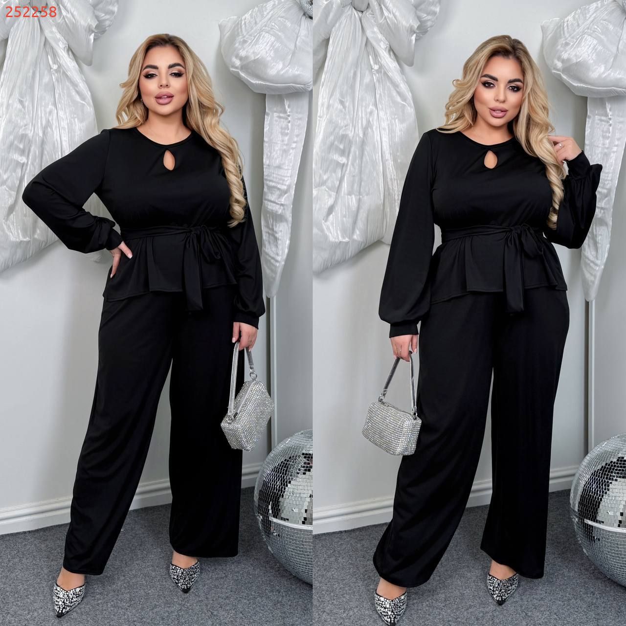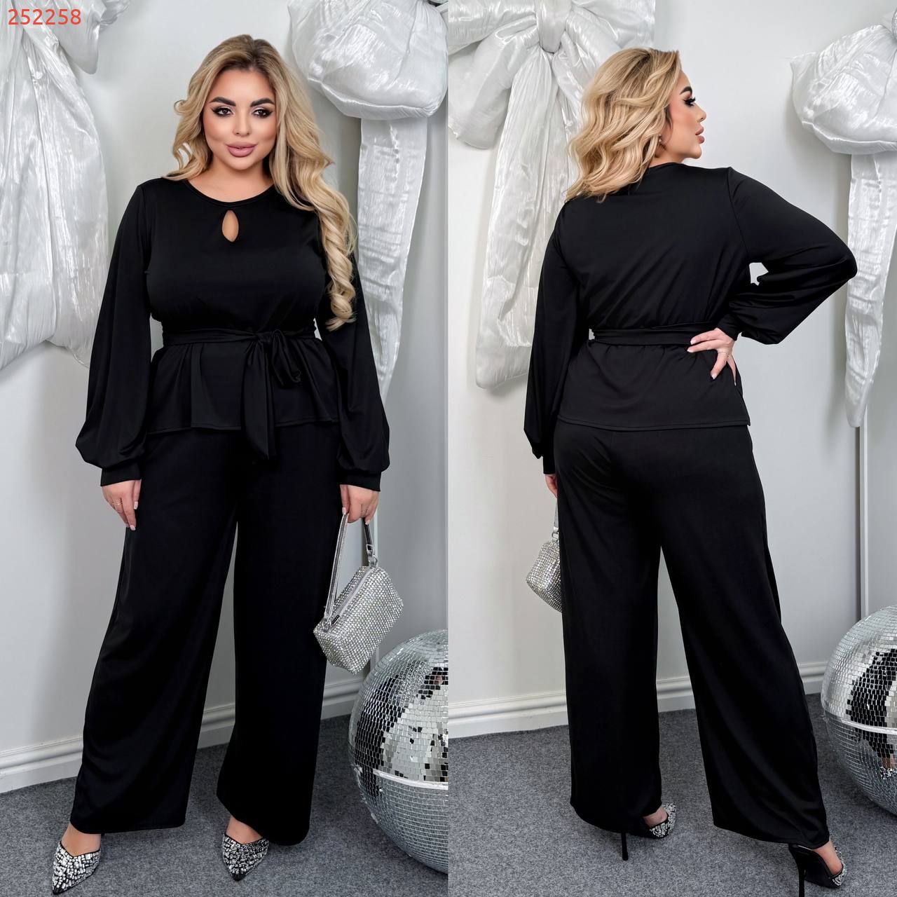 Довжина штанів : 110 см. Святковий костюм двійка . Штани з високою посадкою , пояс на гумці . Кофта прямого покрою з поясом , рукав широкий на манжеті .