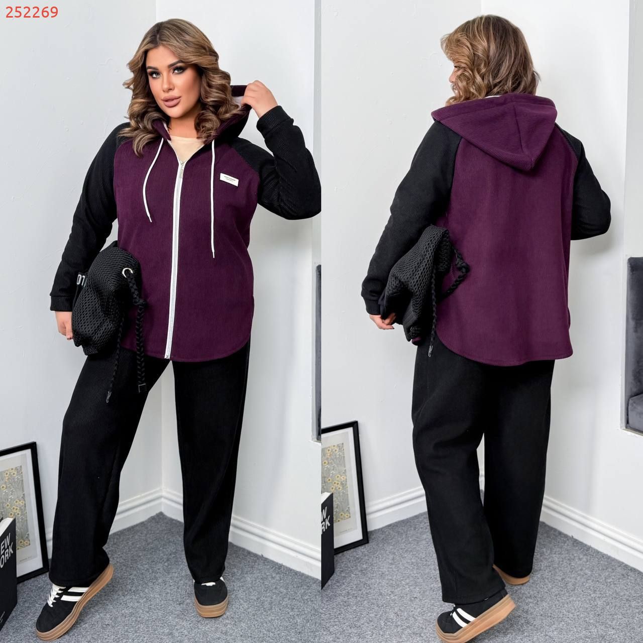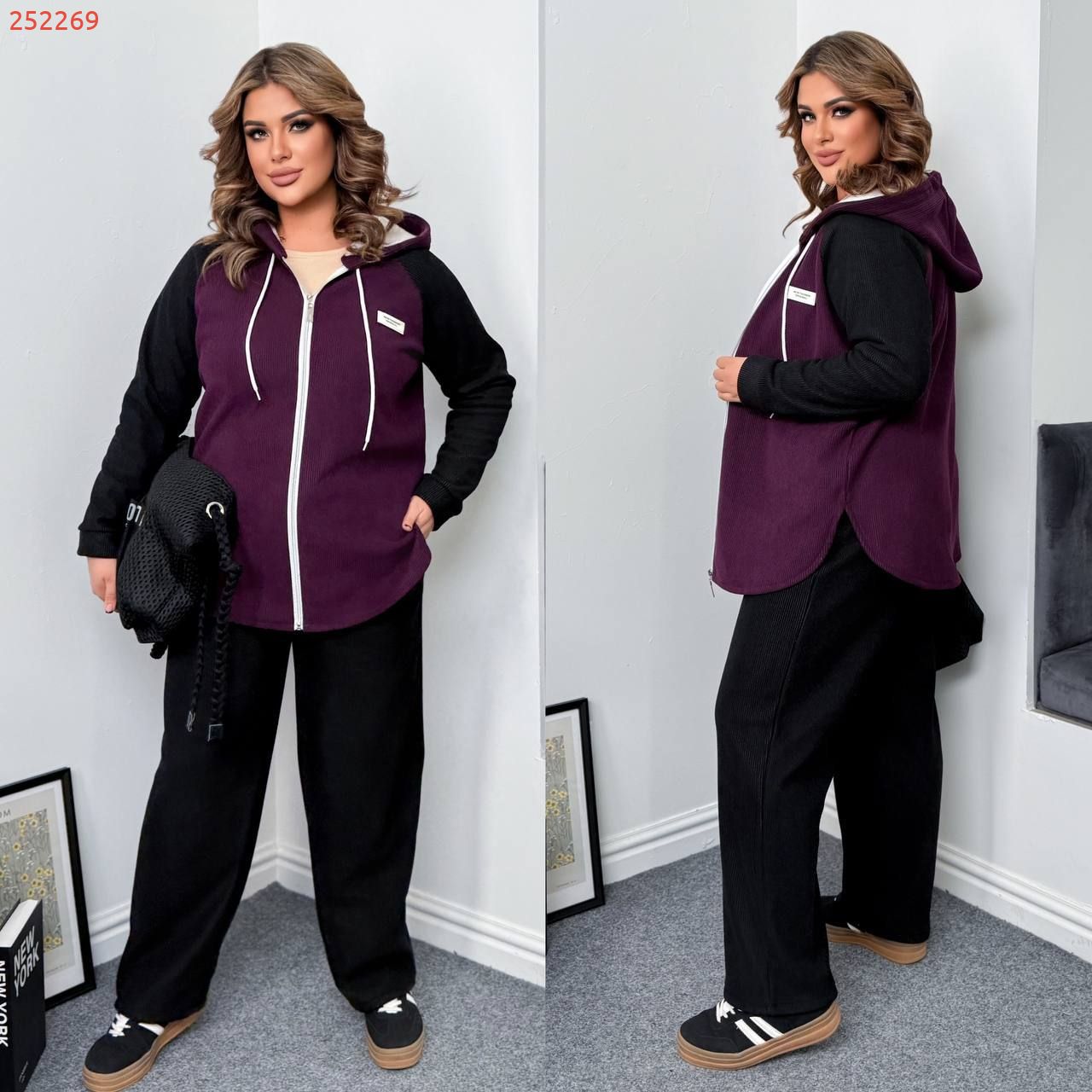 Довжина штанів : 108 см. Теплий костюм на холодну пору . Штани з високою посадкою , пояс на гумці та шнуркі . Кофта прямого покрою , з капюшоном , на блискавці , рукав реглан .
