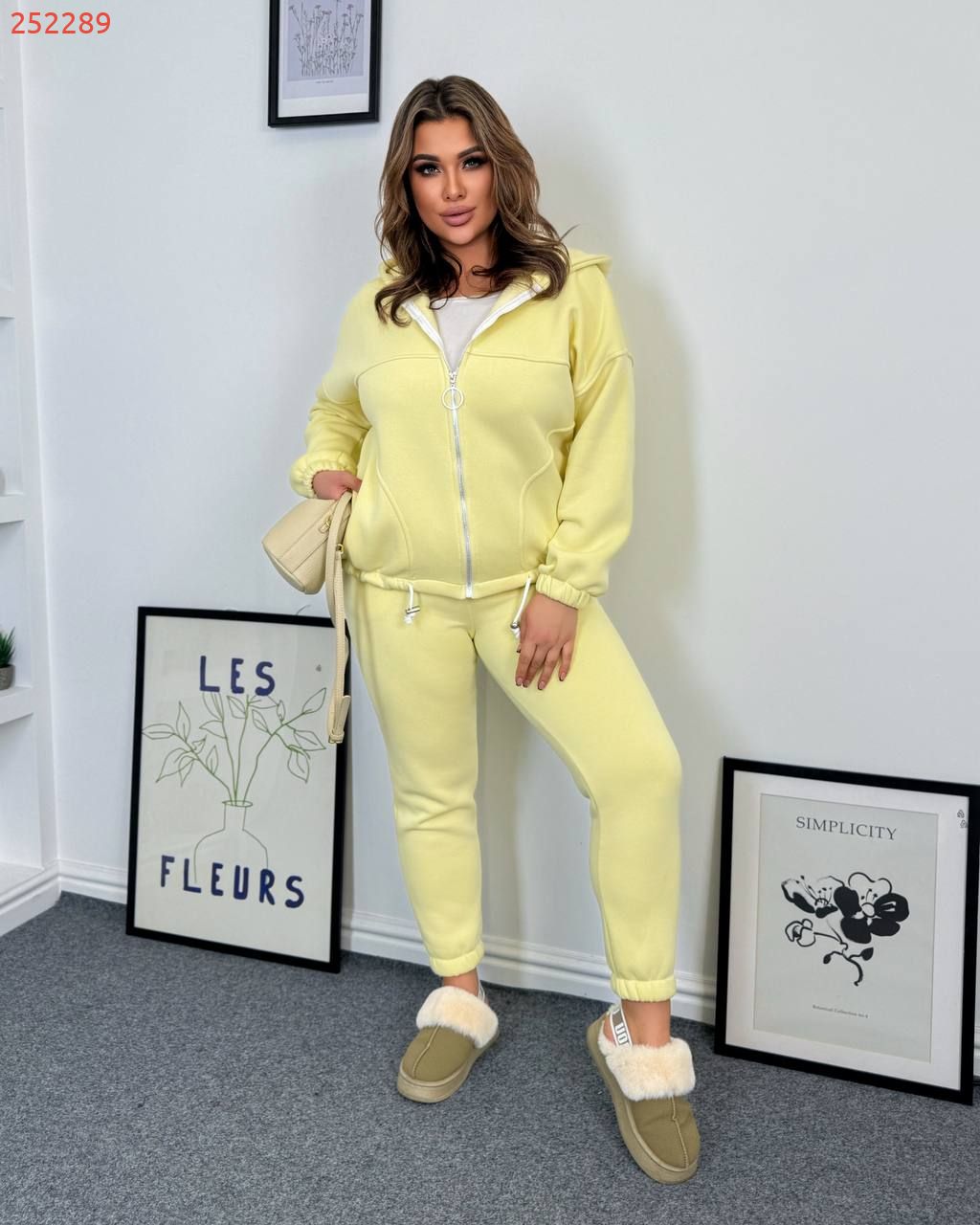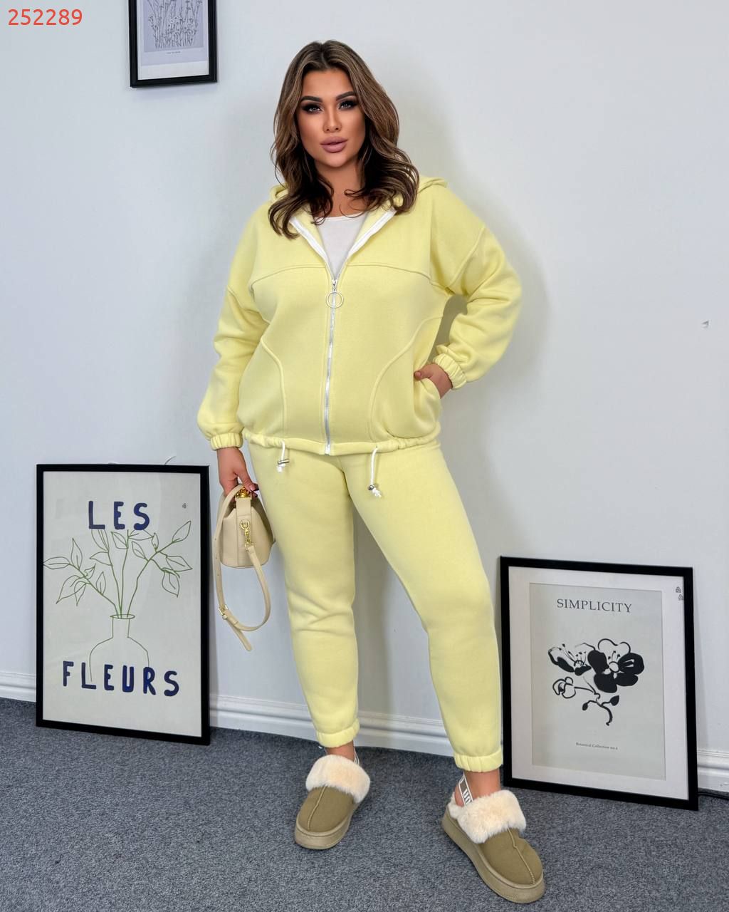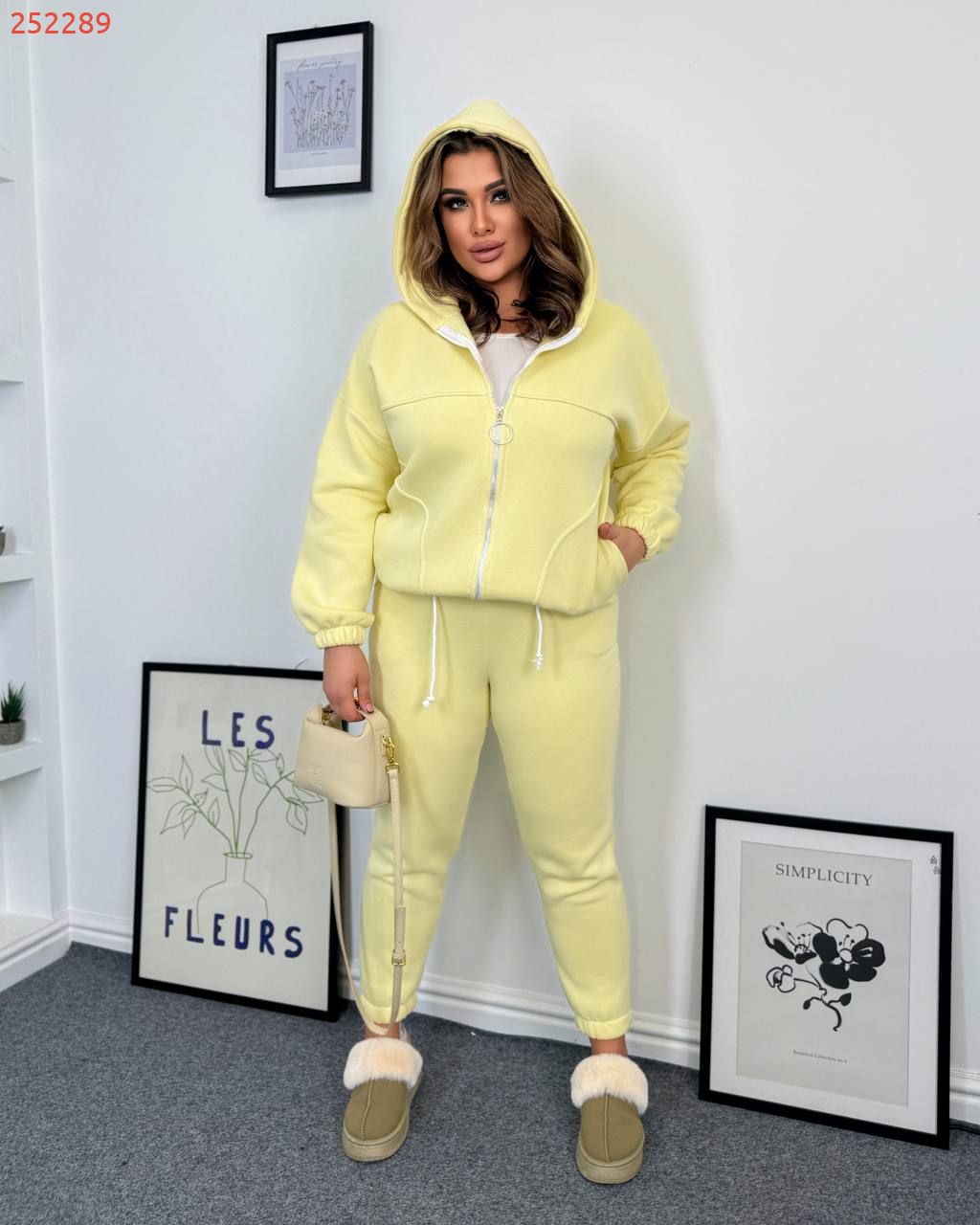 Теплий спортивний костюм з турецької тринитки: кофта на Змійці з подвійним капюшоном, по низу канатик з фіксатором + джогери із високою посадкою, з карманами у бічних швах, на поясі та по низу м'яка гумка