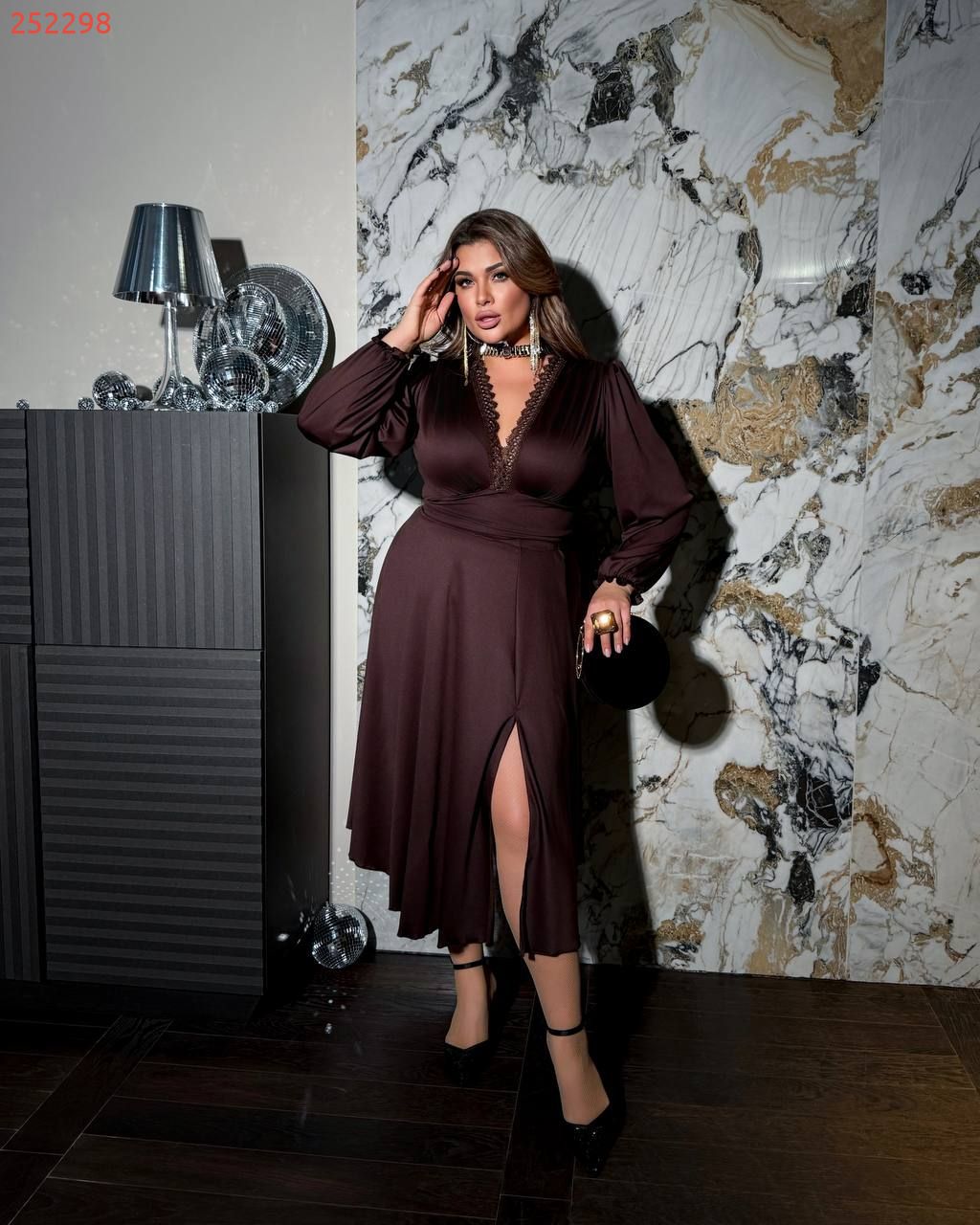М’який трикотаж забезпечує комфорт, а довжина додає витонченості. Для особистого шарму є розріз на нозі.