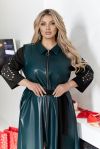 Тканина: Еко шкіра гарної якості + рукава та пояс з Італійського трикотажу + лазерна різка по тканині + стрази DMS + мереживо по низу сукні.