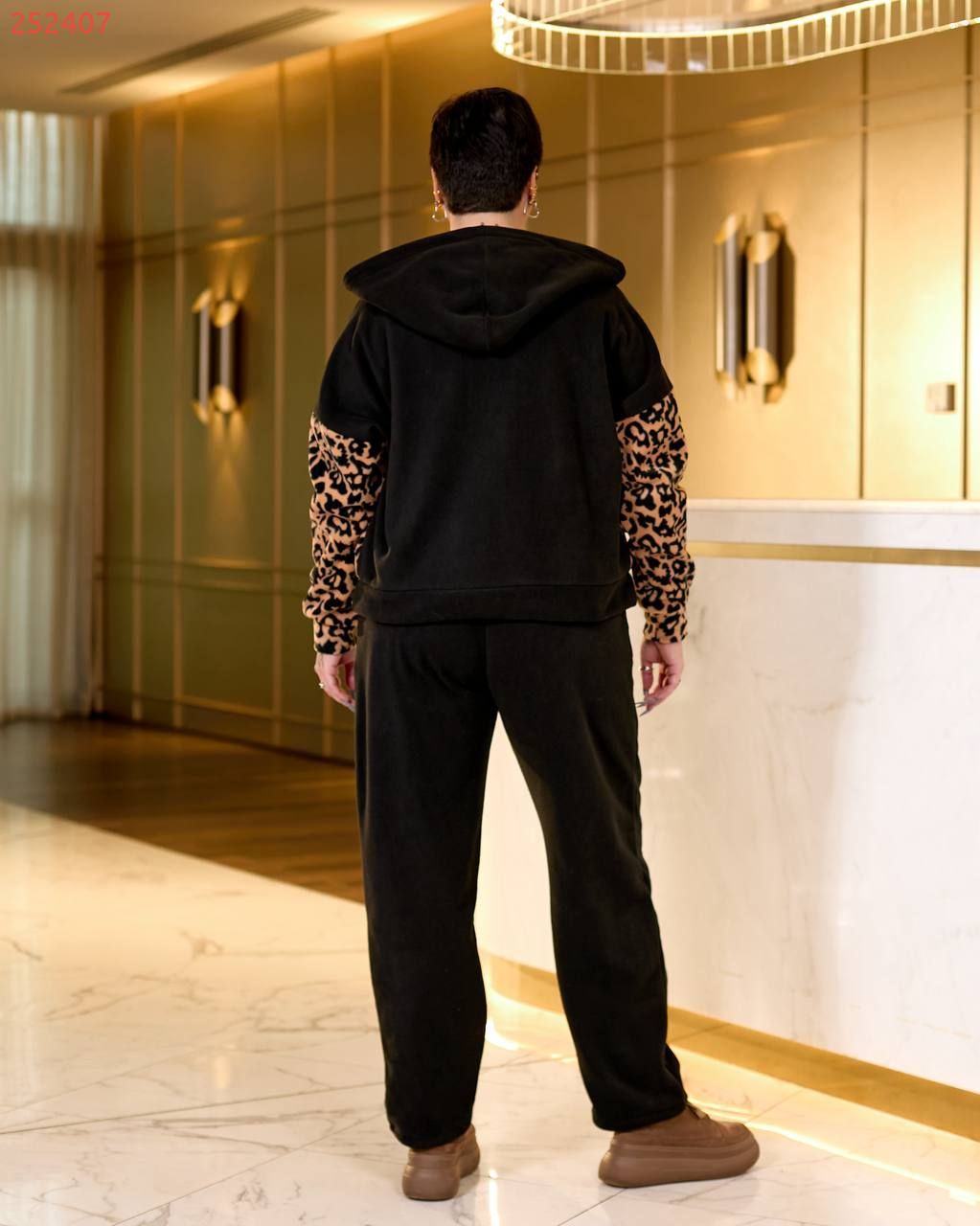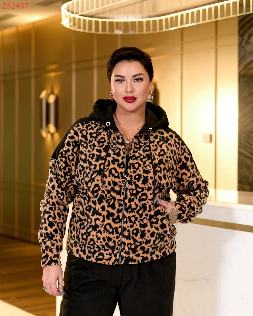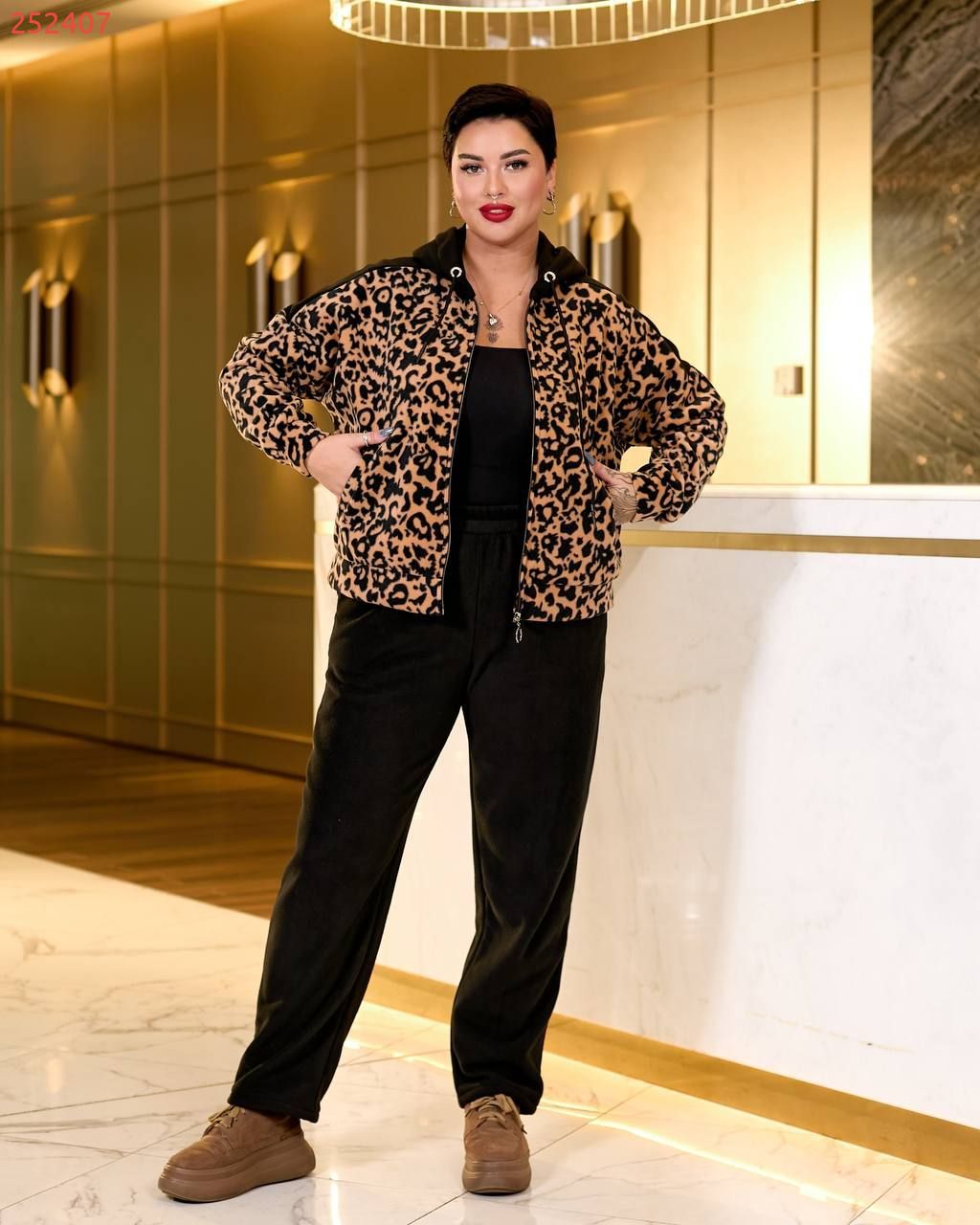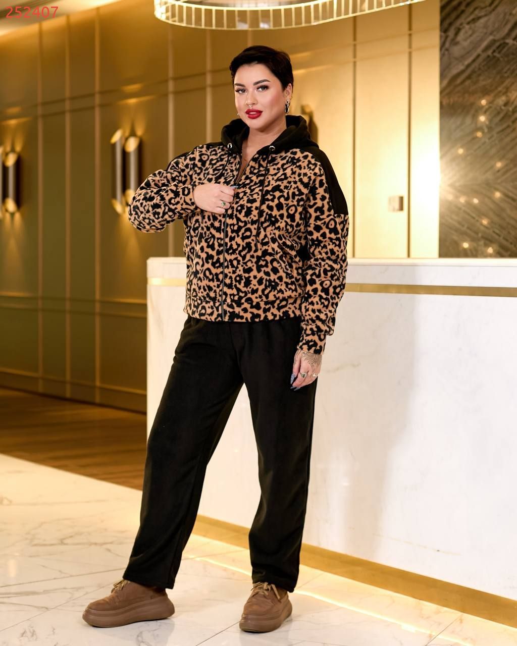 Зустрічай ідеальний комплект для затишку й яскравих образів! М’який фліс приємно гріє, даруючи відчуття тепла навіть у найпохмуріші дні. Ефектний леопардовий принт додає впевненості та драйву, а зручний крій дозволяє почуватися максимально комфортно вдома, у подорожі чи на прогулянці.