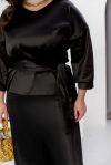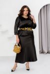 Елегантний святковий костюм зі спідницею, створений із розкішного костюмного шовку, стане вашим ідеальним образом для новорічних свят. Він поєднує витонченість і комфорт, роблячи вас зіркою будь-якої святкової події. Блуза з V-подібним вирізом створює акцент на зоні декольте, додаючи образу жіночності. Спущена лінія плечей та рукави довжиною 3/4 з манжетами на ґудзиках забезпечують стильний вигляд і зручність. Довга спідниця на резинці комфортно сідає по фігурі, а текстильний пояс, що входить до комплекту, дозволяє підкреслити талію та додає завершеності образу. Цей костюм створений, щоб ви відчували себе впевнено й виглядали розкішно під час зустрічі Нового року чи будь-якого іншого особливого заходу.