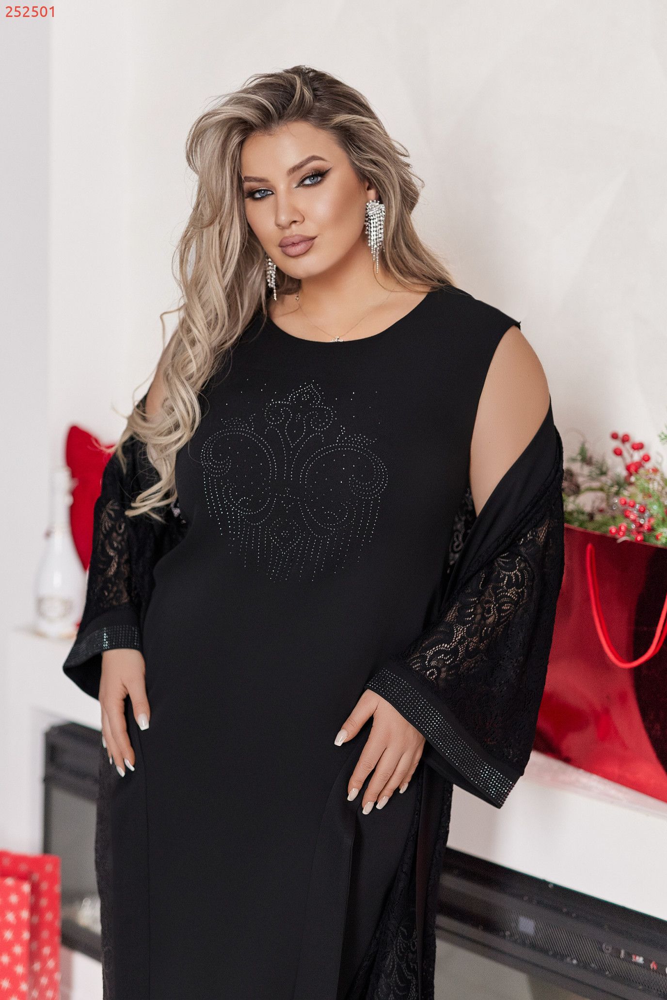 ■ Стильна нарядна Двійка: Сукня з костюмки діагональ + гіпюровий кардиган